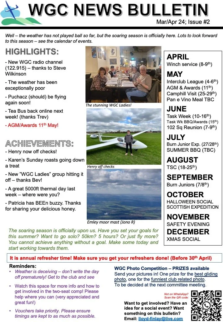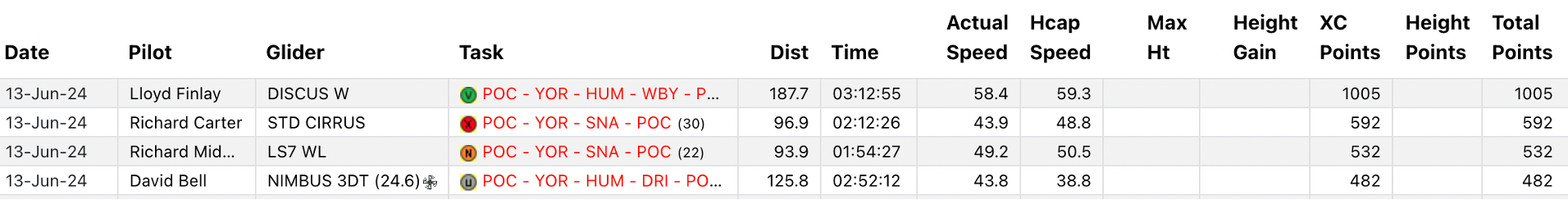 Just a message to thank all those who participated in Task Week. It was a great week despite some inclement weather, we had one day where the weather played ball and tasked to York, Stainton, Humber Bridge (+Whitby!). We had over 25 aerotows (+1 expensive field retrieve!). It must be the Treasurer in me still. Thanks also to Karen & Bernie who kept us fed and watered throughout the week including a smashing BBQ (albeit indoors) on Thursday evening! We also had a task meal at JJs Golf Club that is highly recommended should anyone be looking for local eateries!