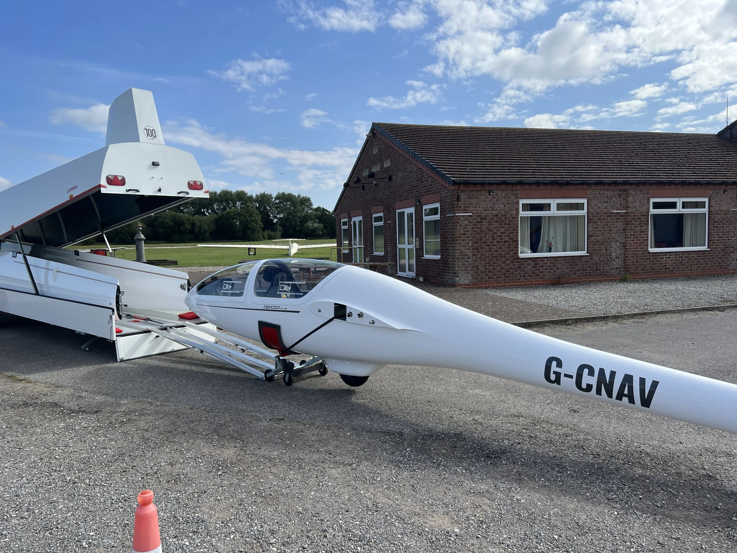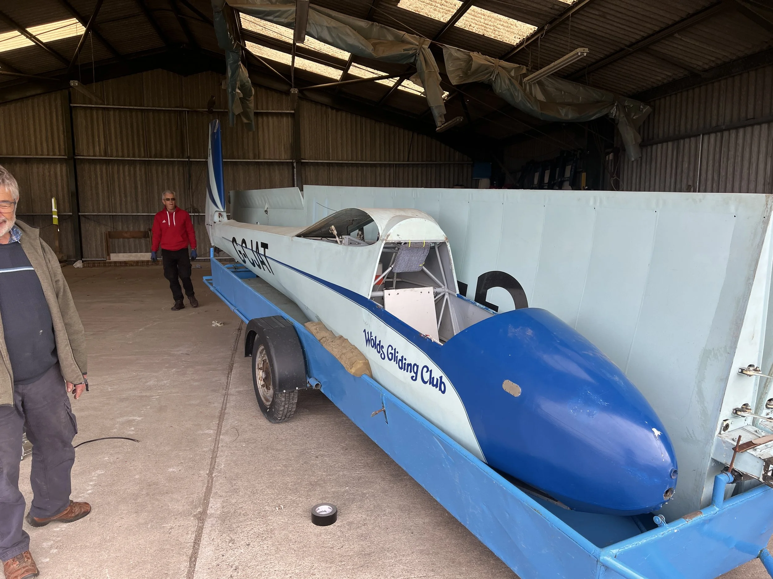 We finally took delivery of the DG1000 and so the bureaucracy began (hoping to get it flying in the next month or two - subject to the CAA gods.) In the meantime, thanks to Chris Lees for collecting it from Germany, Steve Wilkinson for banging his head against the CAA wall and Steve Ruffell who fashioned a wing tip holder for the hangar.
